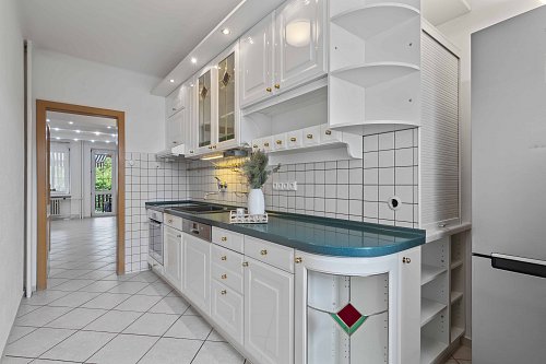 Nechybí vestavná myčka, indukční varná deska, horkovzdušná trouba a nerezová lednice, vše od značek Bosch a Siemens.