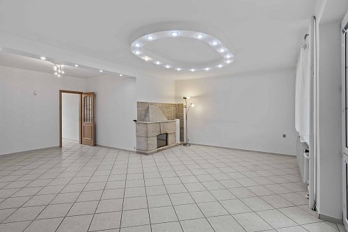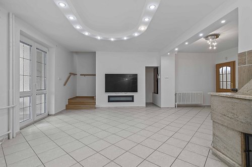 V přízemí vás přivítá prostorný obývací pokoj s jídelním koutem a krbem (36 m²) – ideální prostor pro rodinný život i chvíle klidu.